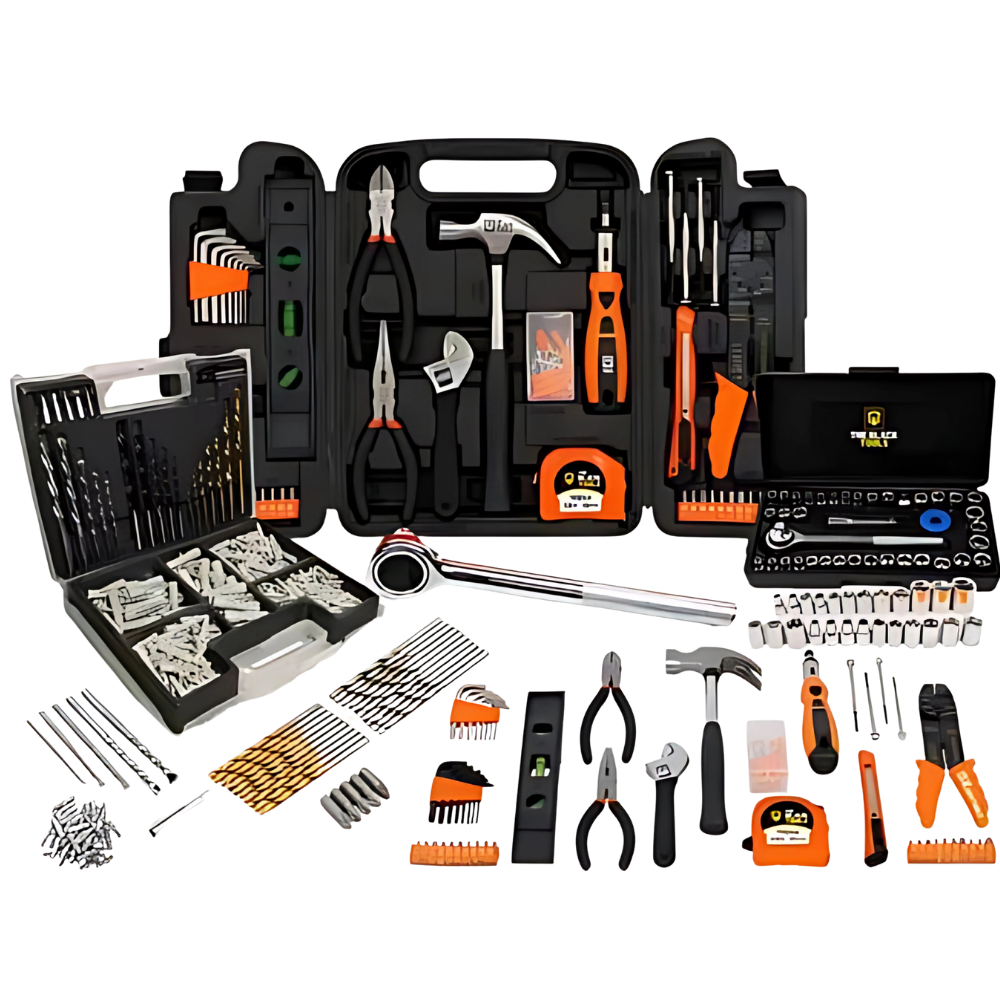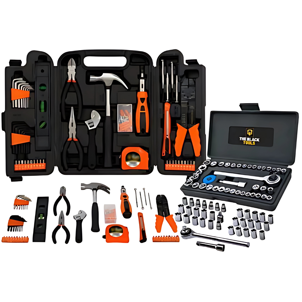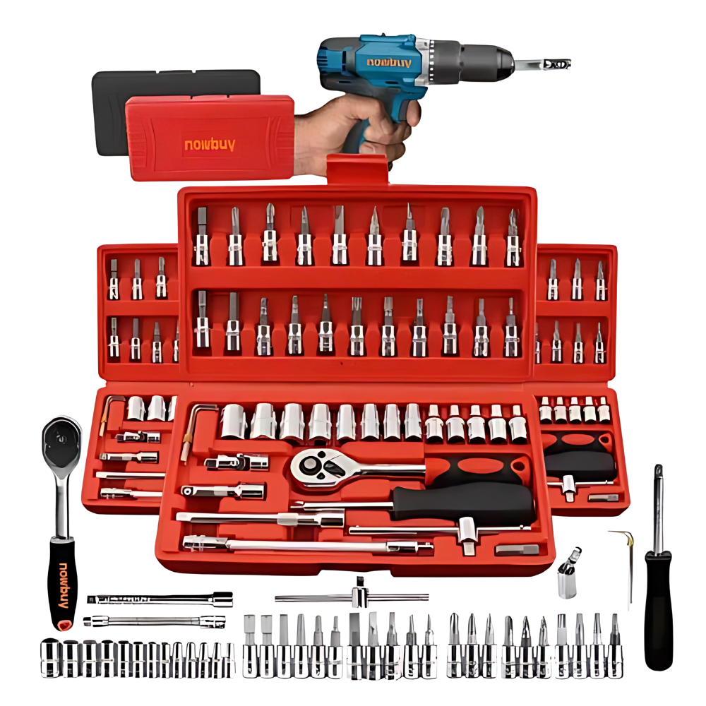 Kit Jogo de Ferramentas 129 Peças com Jogo de 40 Soquetes e Kit de 300 Peças de Brocas e Buchas