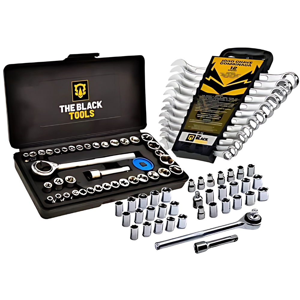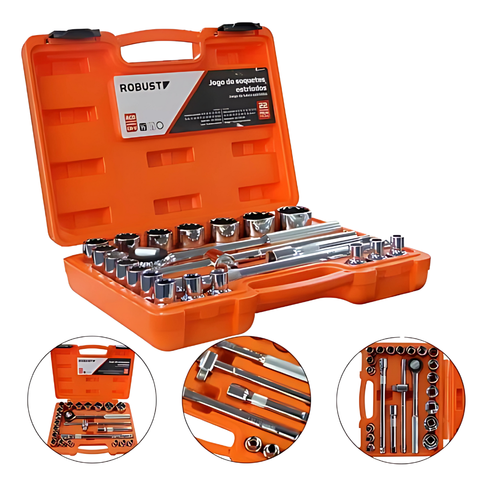 Kit Jogo de Ferramentas 40 Peças com Soquetes e Kit Chave Combinada 6 a 22mm
