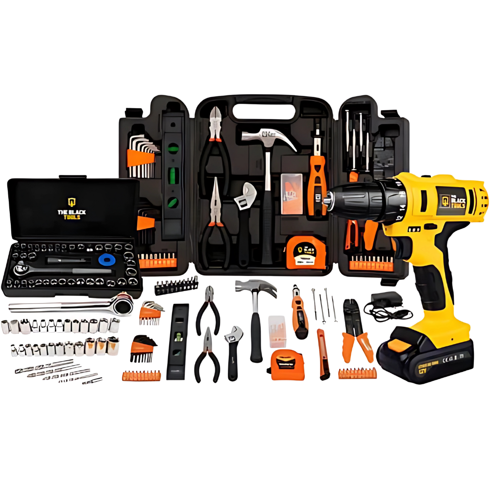 Jogo de Ferramentas 169 Peças com Maleta e Furadeira Parafusadeira Sem Fio 12V TB-12E