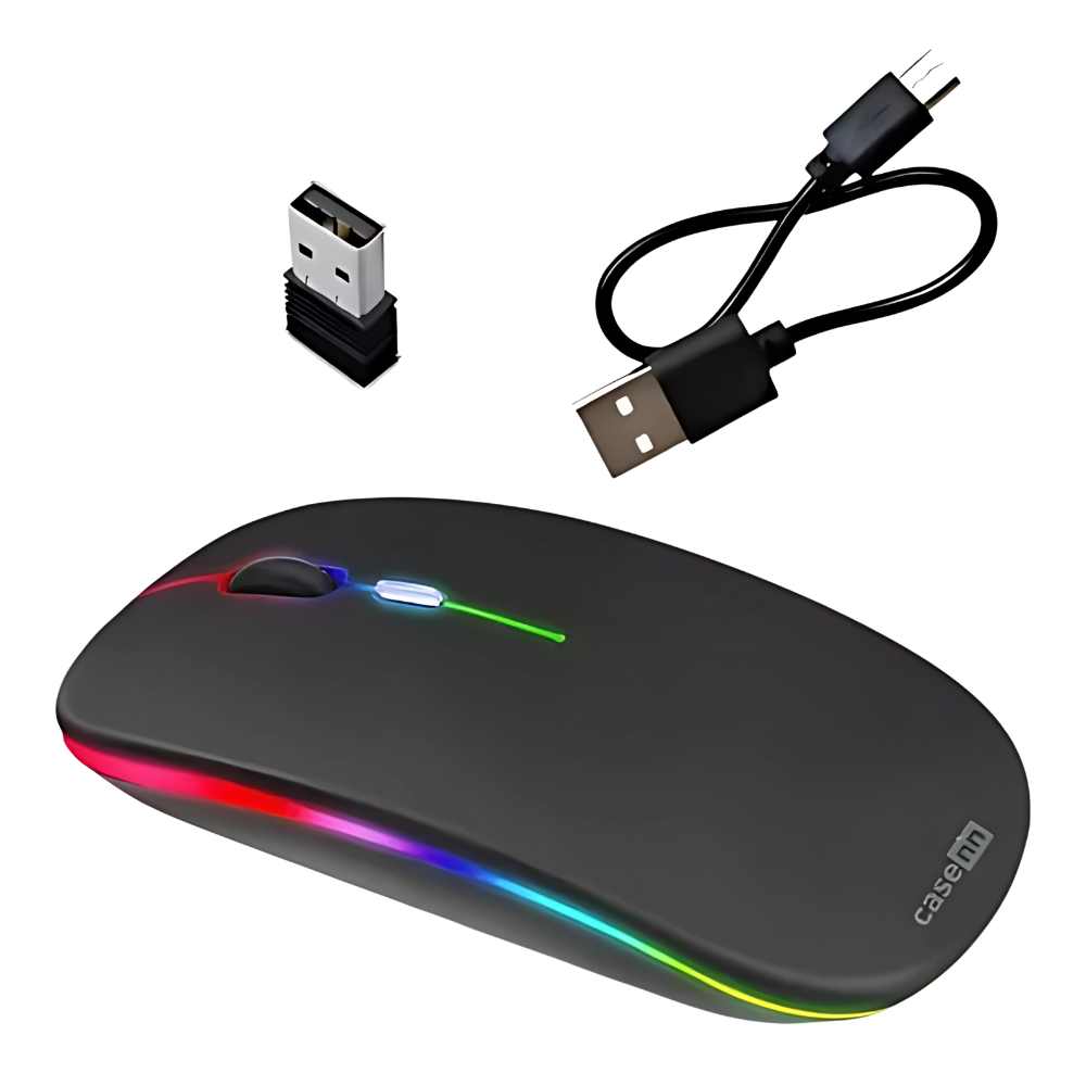 Mouse Sem Fio Recarregável Wireless Optico Led Rgb 2.4ghz