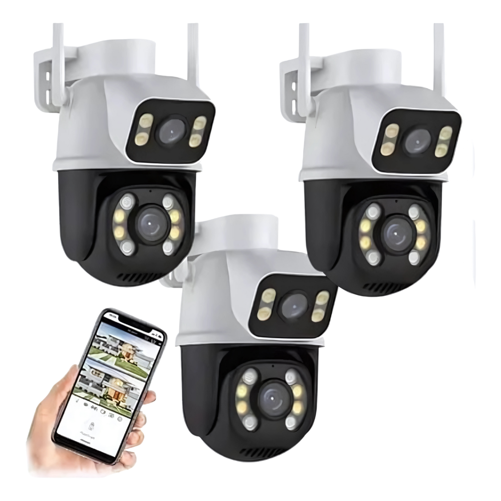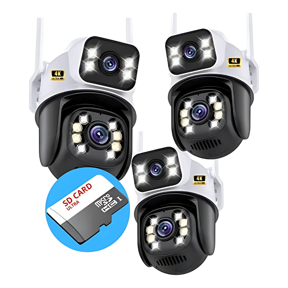( Leve 3 Pague 2 ) Câmera Segurança Dome 360 Prova D’agua Lente Dupla 3 unidades + 3 MicroSD 128gb
